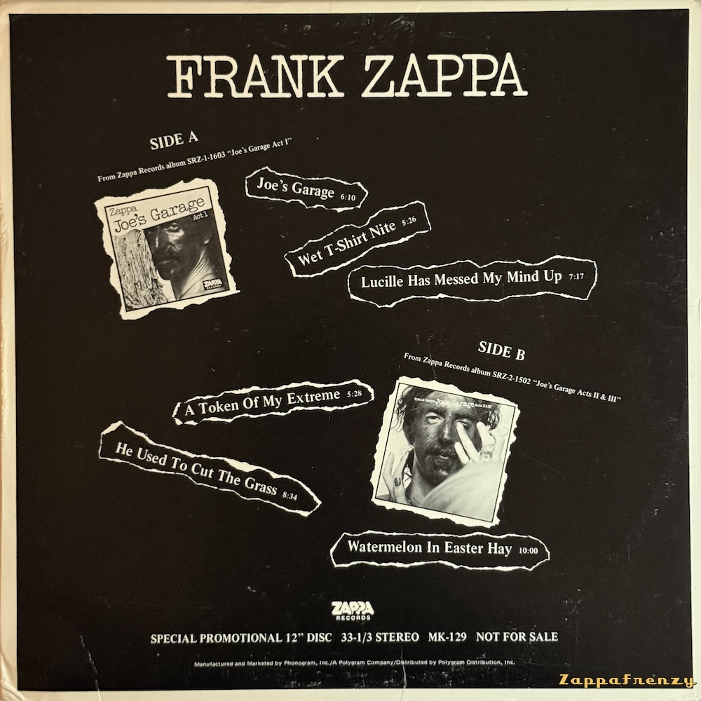 Joe's Garage Special Promotional...